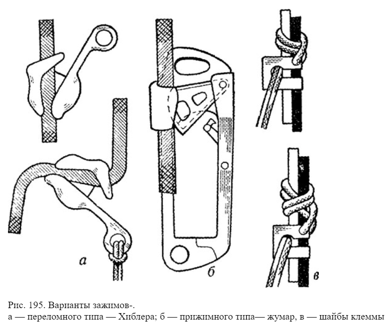 Или ЗАЖИМ ХИБЛЕРА. В спортивном, военном, промышленном и пр. альпинизме страховочным зажимом называются устройства, предназначенные для регулируемой фиксации верёвки при перемещении по ним различных грузов. Причём это важно как при вертикальных перемещениях (при подъёме или спуске), так и горизонтальных (при организации переправ). Человеческий гений разработал много чего для этих целей. И одним из таких изделий является ЗАЖИМ ХИБЕЛЕРА. Думаю, не надо объяснять, как он работает. Такие устройства работали на верёвках от 6 до 11 мм, а одной из проблем их эксплуатации была связана с большой потерей в движении, так как они поворачивались почти на 90 градусов под нагрузкой, относительно ненагруженного состояния. Другой серьёзной проблемой было то, что ХИБЕЛЕРЫ легко снимались с верёвки, даже под нагрузкой и во время движения. Впрочем, отмечают специалисты, от этих недостатков пытались избавиться, модифицировав зажим и добавив проволочную предохранительную защёлку, препятствующую выпадению в