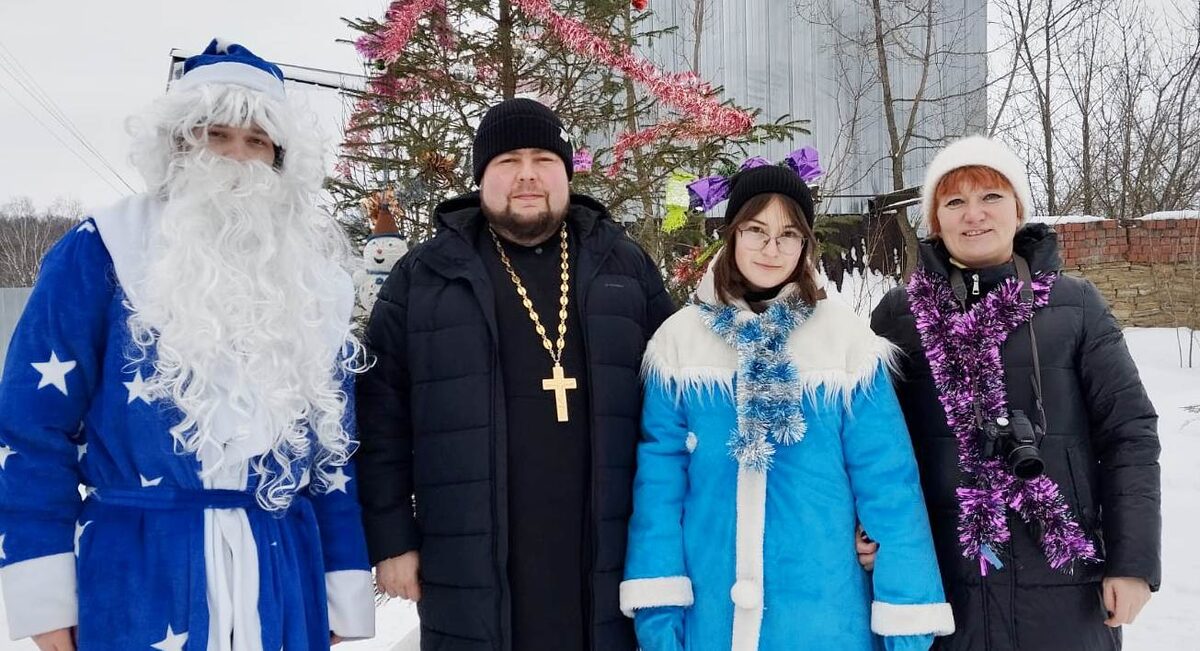 На святочной неделе студия организовала и провела для прихожан и жителей села игровую программу "Рождественский хоровод", прошедшую на территории храма. Иерей Павел Лоскутов открыл программу:
