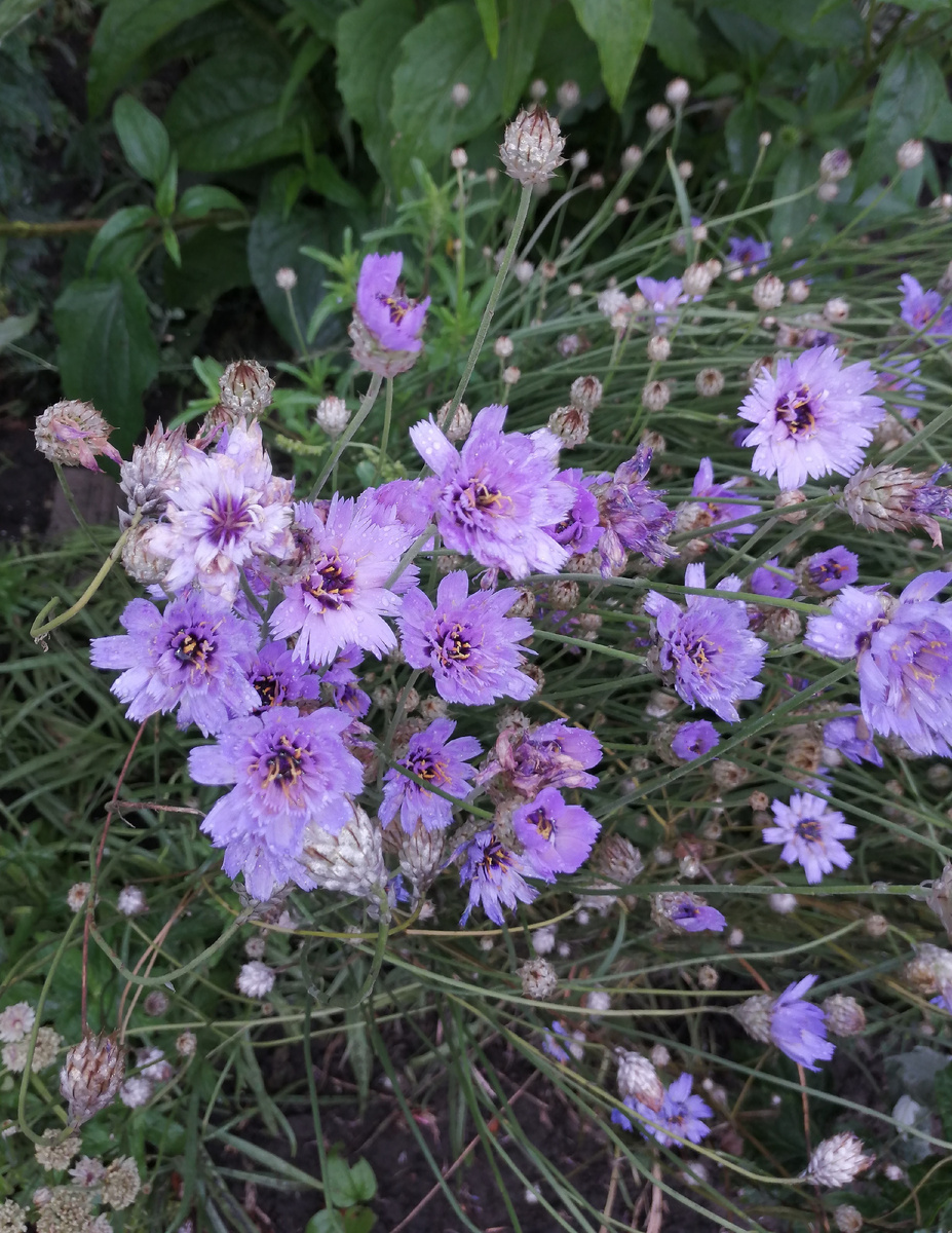 Собственно, я закончила с растениями, которые составляют основу моего цветника. Четыре "основных" - эхинацеи в разных вариантах, но в основном видовая пурпурная, дербенник иволистный, перовския, вейники (и присоединившиеся к ним щучка, молинии и просо прутьевидное) плюс несколько "вольнонаемных", которые частично сидят там, где их посадили, частично гуляют по цветнику. Это две "колючки" - синеголовник и мордовник, а еще шалфеи, каламинта и котовники. Остальные растения представлены в цветнике либо в одном-двух экземплярах, либо посажены недавно, и я пока не знаю, в каком виде они будут расти - в единичном либо повторяющемся. И да, без однолетников и двулетников тоже дело не обошлось. Правда, тут я планирую оставить только те растения, которые возобновляются самосевом - возиться каждый год с однолетней рассадой муторно и не очень практично. Если и будут исключения, то не больше одного-двух. Поехали по порядку. Катананхе голубую, растущую ближе к одному из краев цветника, я уже показыва