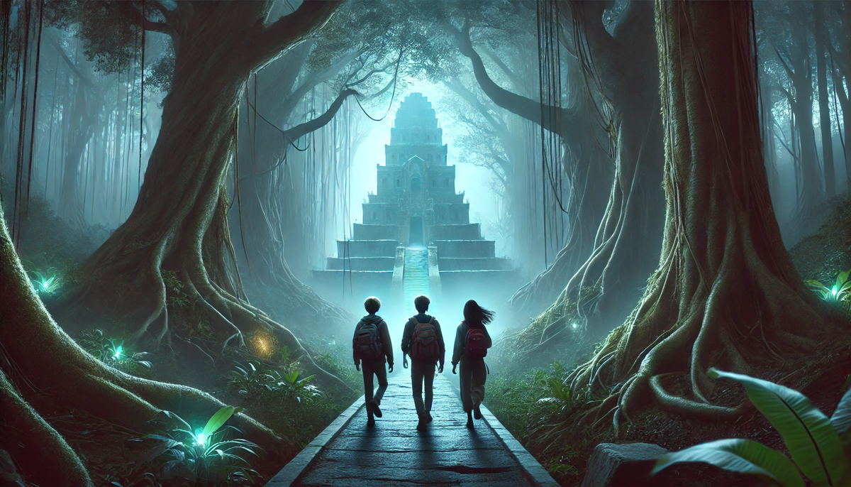 Они шли по узкой тропе, ведущей к древнему храму, скрытому в зарослях сияющих деревьев. Ветер был наполнен шёпотом прошлого, словно сами стены хранили воспоминания тех, кто приходил сюда до них. Листья деревьев мерцали в мягком золотистом свете, а тонкие корни, свиваясь в сложные узоры, словно указывали путь вперёд. — Мы здесь не случайно, — сказал Рами, сжимая кулаки. — Что-то тянет нас внутрь. — Может, ответы? — предположила Лили, её голос был полон любопытства. Эл молча шагал рядом, чувствуя странное волнение. В глубине души он знал, что этот храм хранит не только тайны, но и испытания. Внезапный порыв ветра заставил их замереть, когда в воздухе прозвучало древнее эхо, будто сам храм звал их по именам. Когда они вошли внутрь, свет факелов окрасил стены в тёплый янтарный цвет. В центре зала находились три зеркала, каждое с высеченными именами: Рами, Лили, Эл. Их отражения казались чуть искажёнными, словно между мирами. — Это про нас — шепнула Лили, касаясь зеркальной поверхности. — Н