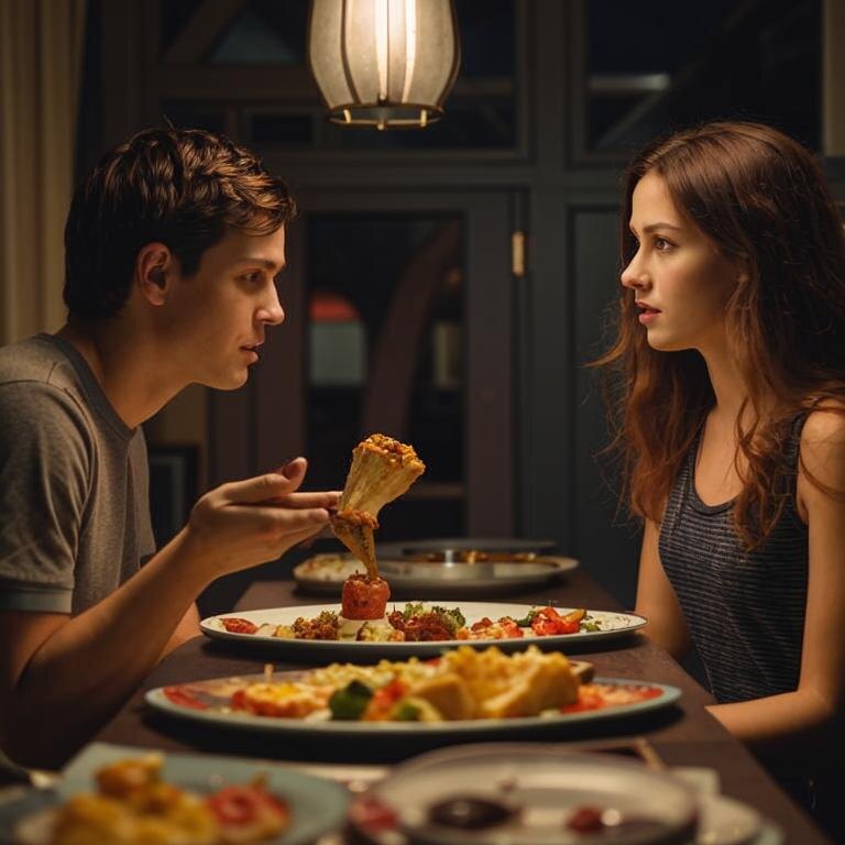Но чем больше Юлия ела, тем сильнее становилось ощущение, что что-то не так. Её желудок начал бурлить, а голова закружилась. Она посмотрела на Артема, который продолжал спокойно есть, и вдруг поняла, что чувствует слабость.