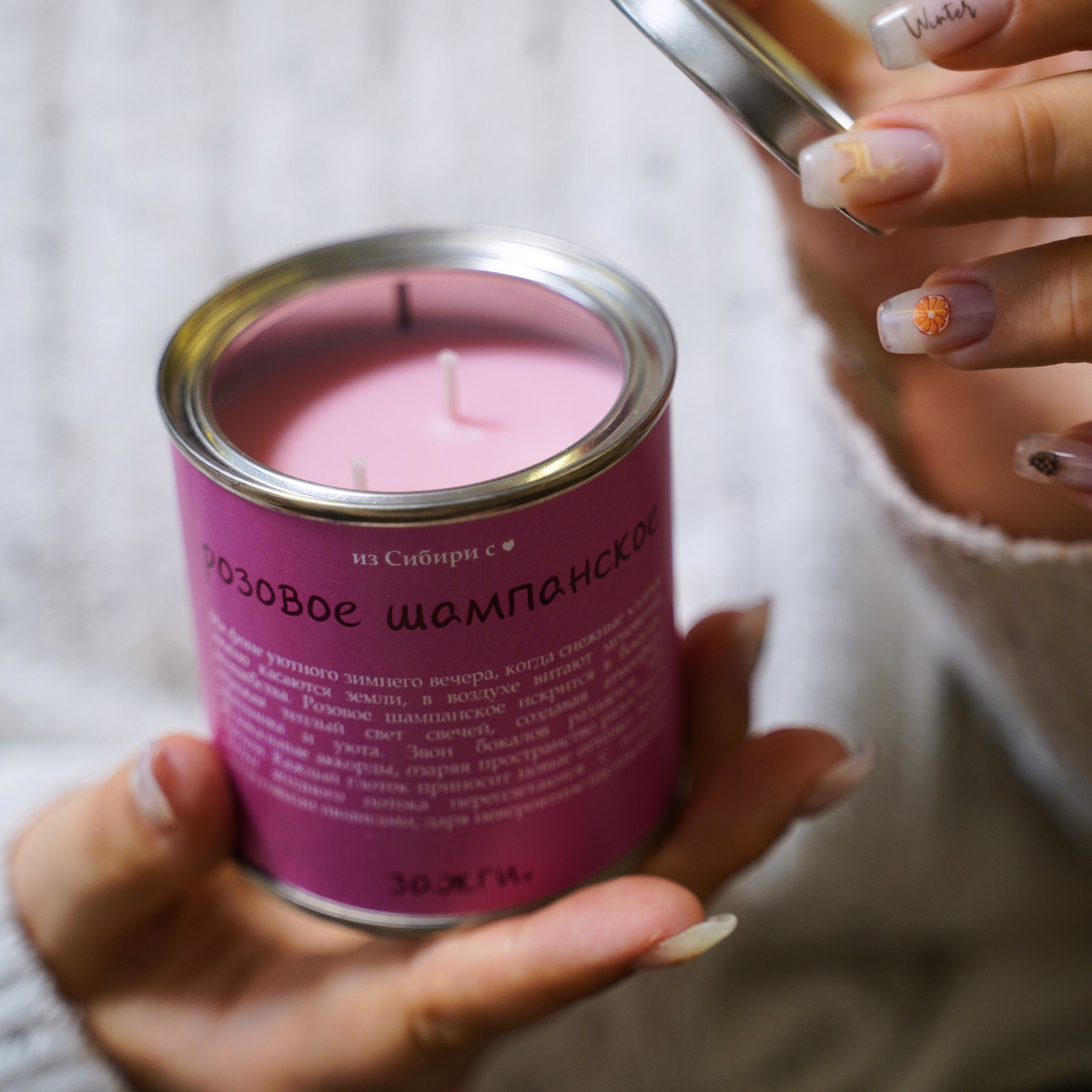 Свеча ароматическая Розовое шампанское из соевого воска 250мл - топ: бергамот - сердце: дамасская роза, фиалка - база: гвоздика, кедр - 250 мл - ручная работа - 100% соевый воск - около 50 ч горения - эфирные масла и душистые вещества органического происхождения Свеча изготовлена вручную в г. Красноярск, Сибирь ♡ Преимущество свеч в банках: запах не выветривается благодаря крышке, поверхность свечи не пылится. ---------------- Ароматическая свеча — это не просто элемент декора, это настоящее произведение искусства, задумка которого пронизана заботой о вашем здоровье и окружающей среде. Изготовленная из натурального соевого воска, свеча не содержит примесей, что делает ее экологичной и безопасной. В отличие от парафиновых свечей, соевые свечи не выделяют токсичные вещества и горят дольше, что делает их идеальным выбором для тех, кто ценит здоровье и комфорт. Каждый компонент тщательно отобран, что подтверждается сертификацией как воска, так и используемых отдушек. Натуральные