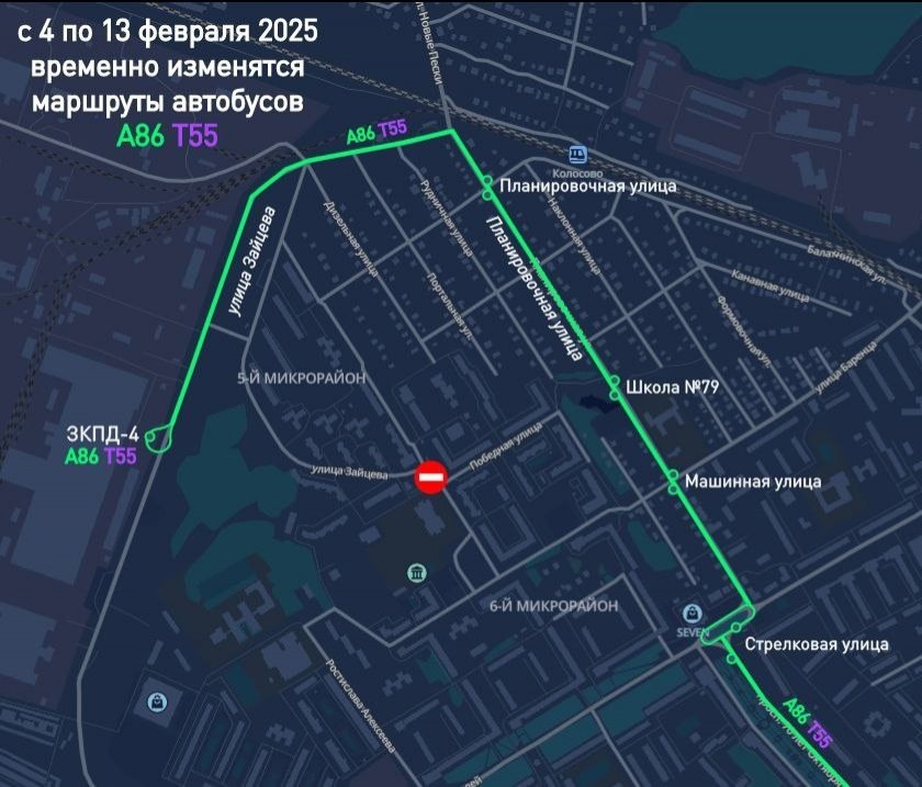 Автобусные маршруты А-86 и Т-55 временно изменились в Нижнем Новгороде с 4 февраля. Это связано с ремонтными работами, которые АО «Теплоэнерго» проводит на улице Зайцева. Об этом сообщает Центр развития транспортных систем Нижегородской области. Участок дороги у дома № 17 будет закрыт для транспорта до конца дня 13 февраля. Сейчас автобусы А-86 и Т-55 следуют по улицам Планировочной и Зайцева. На их пути ввели дополнительные остановки в обе стороны: «Школа № 79» и «Улица Планировочная». Водителей личных автомобилей также просят соблюдать указания дорожных знаков и объезжать зону работ по соседним улицам. Увидеть актуальные перекрытия на дорогах нижегородцы также могут на онлайн-карте. Новый сервис представили в Нижнем Новгороде в конце января.