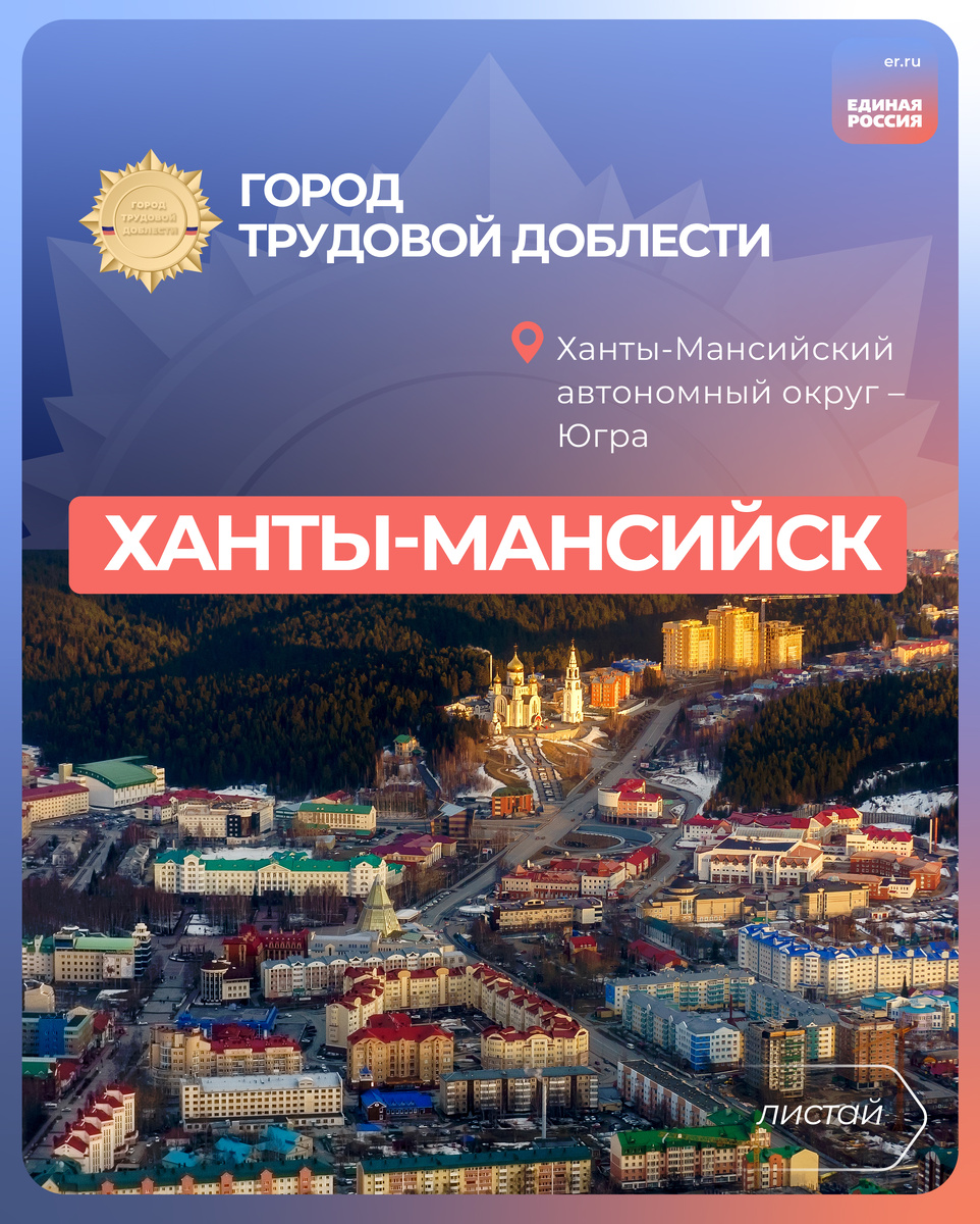 В 2023 году столице Ханты-Мансийского автономного округа – Югры – Ханты-Мансийску присвоено звание «Город трудовой доблести». Поддержку жителям в проведении опросов и сборе документов оказала партия «Единая Россия». О трудовых и боевых подвигах северян рассказывает депутат Думы Ханты-Мансийского автономного округа-Югры, член Генерального совета партии «Единая Россия», ветеран СВО Дмитрий Аксёнов. Своё имя столица Югры получила осенью 1940 года. Будущий город назвали в честь двух коренных народов Севера – ханты и манси. Год спустя большинство мужчин окружного поселения отправились на фронт. Тем, кто остался в тылу, предстояло обеспечивать продовольствие фронту, принимать эвакуированных детей и предприятия, осваивать новые направлении выпуска военной продукции и день за днём приближать Победу. За трудовые успехи медалью «За доблестный труд в Великой Отечественной войне 1941-1945-х годов» были награждены более тысячи жителей Ханты-Мансийска. Фактически, каждый десятый житель поселения. «
