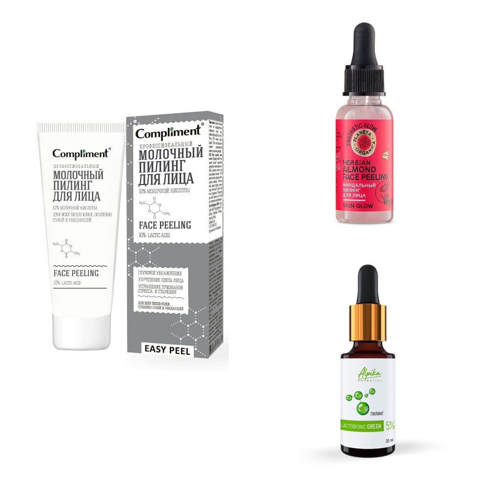 Они помогают глубоко очистить поры, стимулируют деление клеток, работают с пигментными пятнами, постакне, выравнивают текстуру кожи. Вот несколько мягких, работающих на поверхности кожи и подходящих даже новичкам: ✅ Миндальный пилинг Planeta Organica Skin Super Food - в составе миндальная, молочная и салициловая кислота для отшелушивающего, осветляющего, антисептического действия. А также кокосовая вода и пантенол, чтобы успокоить кожу. ✅ Молочный пилинг Compliment - всесезонный моно-пилинг. Оказывает деликатное отшелушивающее, но мощное увлажняющее действие. При долгосрочном применении осветляет пигментацию. ✅ Лактобионовый пилинг Альпика - в составе лактобионовая, миндальная, яблочная и винная кислота. Мягкое отшелушивающее, антиоксидантное действие, глубокое увлажнение, стимуляция синтеза коллагена. Подойдет для чувствительной, склонной к куперозу кожи. Можно заказать на официальном сайте, через косметолога. Для процедуры понадобится тоник-нейтрализатор, есть у бренда. ❗️ Напоминаю