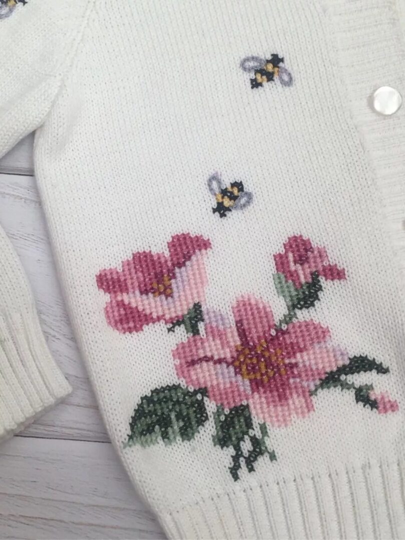 По петельная вышивка на лицевой глади — это техника, при которой узор наносится поверх уже связанного полотна. Для этого используется крючок или игла с большим ушком, а нити протягиваются через петли основного полотна. Такой подход позволяет создавать объёмные и чёткие рисунки, которые выглядят как настоящие картины.
