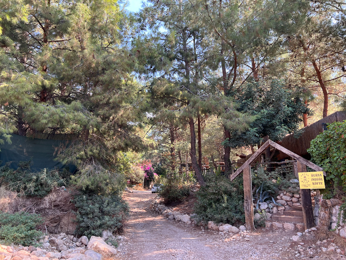 Деревня Кабак представляет собой долину с крутыми склонами, которые достигают до 800 метров в высоту. Своего рода каньон, прогуляться по которому стоит, чтобы увидеть нетронутую природу данной местности, утопающую в зелени. Это та самая дорога, которая начинается от побережья и ведёт к остановке долмуша, направляющегося в Фетие. Простое, незамысловатое жилье для путешественников, идущих по Ликийской тропе или занимающихся различными духовными практиками. Таких здесь очень много. Эзотерики любят это место - тихое, уединенное, незаполненное массами туристов. В долине много кемпингов. Состояние нирваны и отрешенности витает в воздухе. А по вечерам слышна музыка и устраиваются фаер-шоу. С автобусной остановки в Кабаке можно на долмуше доехать до смотровой площадки Долины Бабочек. Можно 8 километров дойти пешком по трассе с потрясающими видами на Средиземное море. Смотровых площадок с видом на Долину Бабочек несколько, и с каждой открываются красивые виды. Я, к сожалению, увидела совсем