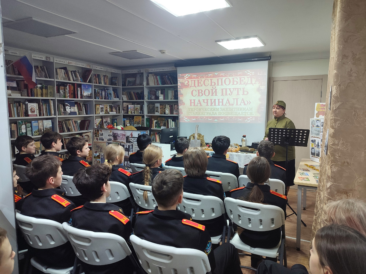 В целях сохранения исторической памяти и воспитания патриотизма у молодежи 3 февраля в Библиотеке семейного чтения прошёл час мужества для учащихся 7 кадетского класса школы № 2117.