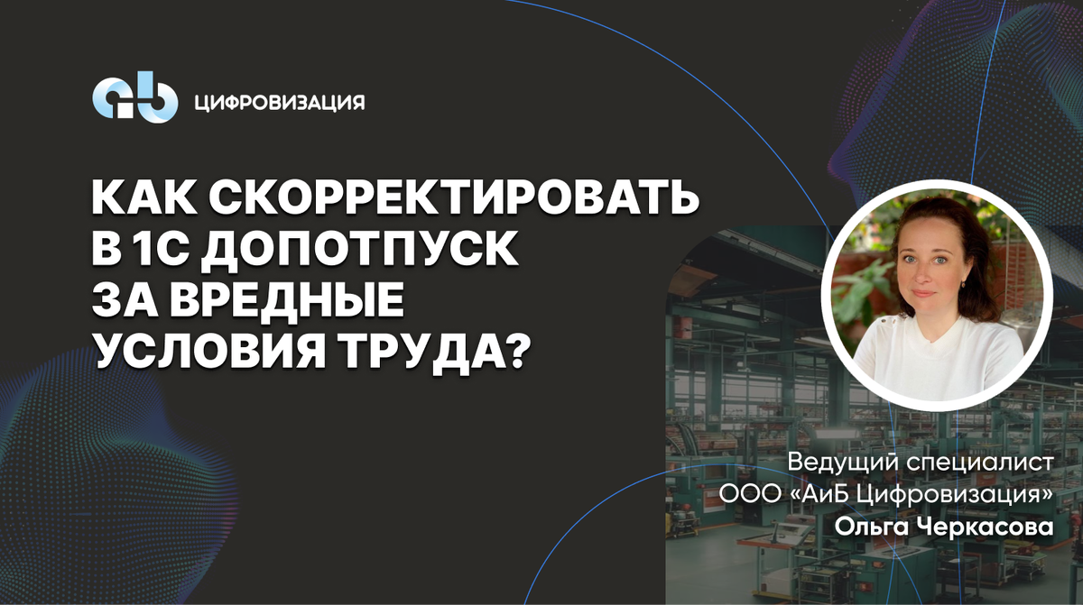 Ольга Черкасова, ведущий специалист ООО «АиБ Цифровизация» Заказчик обратился с задачей: привести алгоритм расчёта накопленных дней дополнительного отпуска за вредные условия труда в соответствие с положениями Коллективного договора. Надо сказать, что алгоритм, утвержденный в Коллективном договоре, кардинально отличается от типового расчёта дополнительных дней отпуска за вредные условия труда в 1С:ЗУП КОРП. Сотрудникам кадровой службы приходилось ежегодно вручную создавать корректировочные документы по остаткам дней дополнительного отпуска. Вопрос следования типовым алгоритмам расчёта дней дополнительного отпуска заказчиком был отвергнут, т.к. в этом случае происходит ухудшение условий работника. Далее на сайте... ➡️ Проблемы перехода с иностранной ERP на «1С:ERP» ➡️ Внедрить «1С:ERP» для регламентированного и раздельного учёта (по ГОЗ) без запуска системы в производстве ➡️ Зарплата в ГОЗ: делимся лайфхаками ➡️ Тормозит 1С. В чём проблема? ➡️ Что нужно предприятию: WMS ил