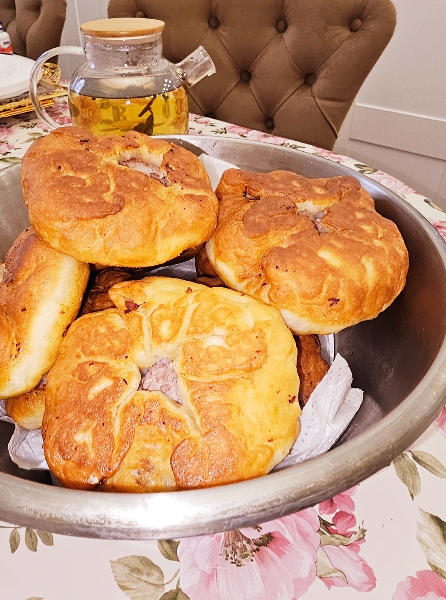 Друзья, если Вы такие же любители беляшей и чебуреков как и я ;) Я не знаю где в Москве можно сьесть вкусные беляши и чебуреки, поэтому жарю сама. Зато знаю , где в Питере вкусные чебуреки- "Кафе Брынза"на Невском (именно на Невском, на Гороховой не то ;) Рецепт беляшей и чебуреков у Всех свой любимый, если Вы еще не нашли свой рецепт беляшей, делюсь рецептом сочных, воздушных с хрустящей корочкой, без лишних танцев "с бубном. Жареные беляши считаются творением и шедевром Советской кулинарии, в отличии от них Татарские без дрожжей и в духовке": Молоко 2 стакана (граненые кот по 200 мл) Дрожжи сухие пакетик 11 гр. Сахар 2 ст.л.Соль 1 чайная ложка. Мука 4 стакана (граненые которые по 200 мл) ( У меня Макфа, другой муки может понадобится меньше, например Гудвилл 3,5 стакана) Масло оливковое 6 столовых ложек . Начинка: говядина/ свинина, лук, соль, перец. Берем теплое молоко ( ни в коем случае не горячее иначе дрожжи погибнут.) Именно молоко ( я не люблю на воде) . Кладем сухие дрожжи (