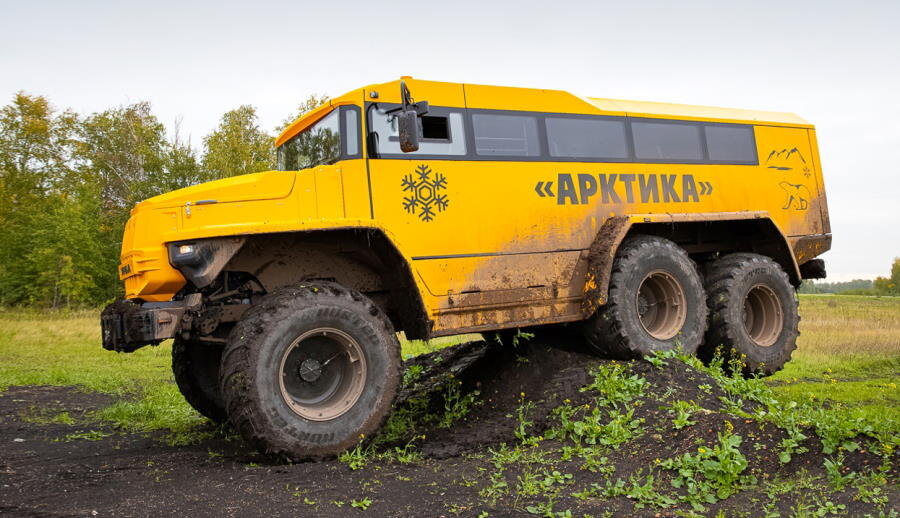Шестиколёсная «Арктика» базируется на доработанных мостах от грузовика «Урал-4320». Посадочный диаметр колёс составляет 32 дюйма, а дорожный просвет равен 60 сантиметрам — автобус сможет передвигаться по самому суровому бездорожью и временным зимним дорогам Крайнего Севера. Основными покупателями такой техники должны стать предприятия добывающей отрасли.