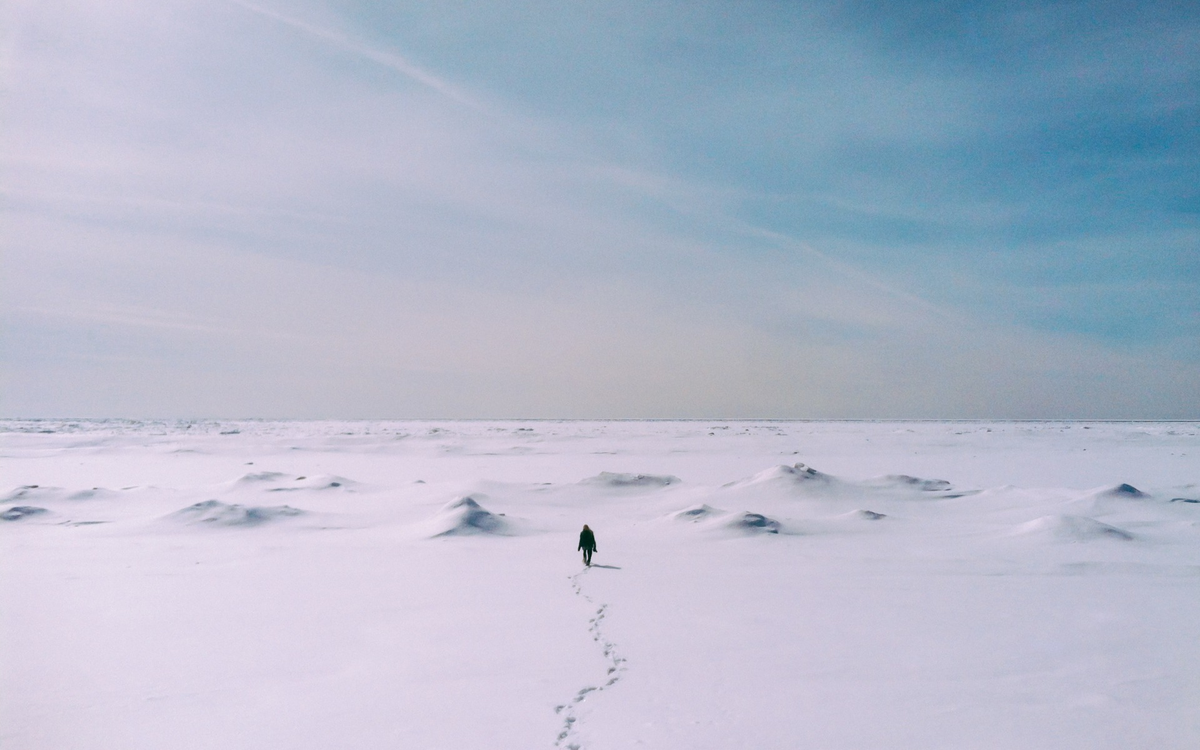 Он покидает пределы станции и уходит в снежную пустыню, где бушует метель и много километров нет ничего, кроме снега.