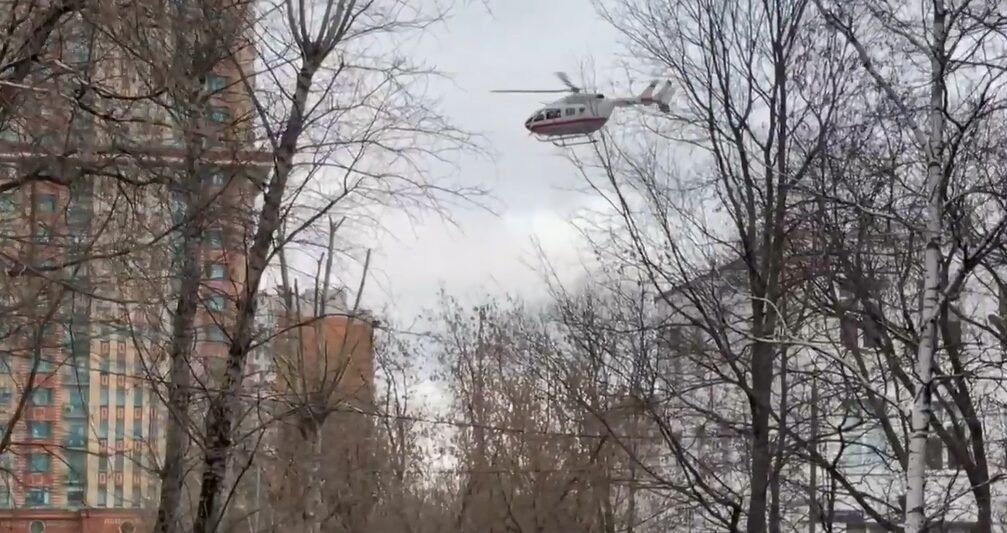 Вертолет МЧС прибыл на место взрыва в жилом комплексе «Алые паруса» в Москве