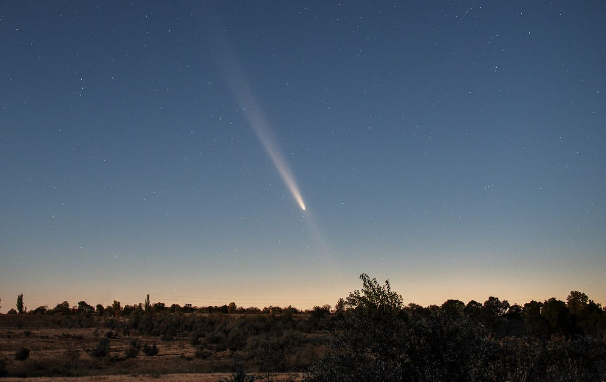 15 октября 2024 г. в провинции Хубэй, расположенной в центральном Китае, на видео был запечатлен захватывающий небесный момент над покатыми вершинами горы Цзыцзинь. Когда небо потемнело и последние оттенки заката померкли, яркая комета пронеслась по горизонту, оставив за собой длинный сияющий хвост. Редкое зрелище создало сказочную атмосферу, а сияние кометы контрастировало с горным хребтом и рассеянными огнями вдалеке. Сцена казалась почти сюрреалистичной, как будто взятой из картины или фантастического фильма.