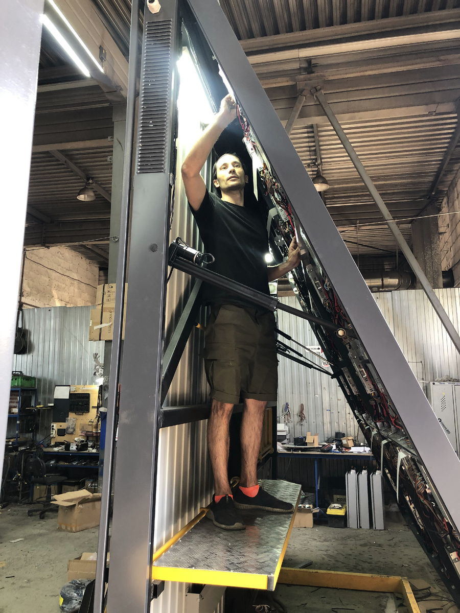 С распашным экраном всё наоборот! Гораздо проще открыть экран с пульта, добраться до рамы по лестнице, откинуть площадку и обслуживать его.