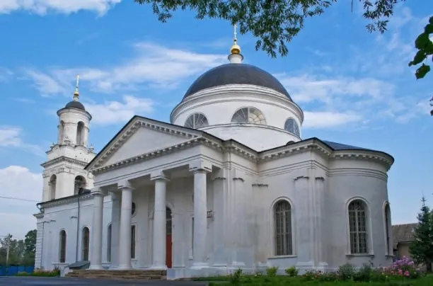 Церковь Собора Иоанна Предтечи была построена в 1797 г. владельцем села и местной фабрики И.Л.Лазаревым по проекту известных архитекторов Ю.М.Фельтена (автора многих построек Санкт-Петербурга) и И.Подьячева (местного уроженца)(?). Была как усадебной, так и приходской для рабочих фабрики, чем объясняются ее большие размеры. Из-за смерти И.Л.Лазарева в 1801 г. храм остался без внутреннего убранства. Сооруженный позднее иконостас, остатки которого сохранялись до начала ХХ в., был примитивен, живопись отсутствовала. В 1842 г. при владельцах Ефимовых поставлен новый иконостас, позолочены главы и кресты. В 1853 г. деревянный пол был заменен чугунным с орнаментальным рисунком, устроено духовое отопление. В 1870 г. на средства купцов Залогиных храм был впервые расписан. Эти же вкладчики в 1888 г. заменили кровлю, а в 1891 г. возвели ограду (сохранялась фрагментарно). В XIX в. колокольню украшали башенные часы. В начале ХХ в. было перестроено завершение, световой барабан заменен глухим, отверстие заложено. Церковь была закрыта в конце 1930-х гг. (1940 г. ?). и использовалась под склад и мастерские. Вновь открыта в 1990 г. и отреставрирована.
