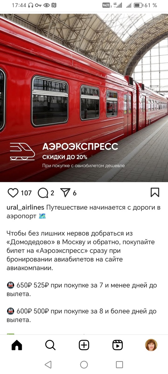 Еще ездите Аэроэкспрессом? Мне вот иногда приходится 🤔 А он, редиска, подорожал прям сильно. Так вот, делюсь лайфхаком: "Уральские авиалинии" вроде как запустили на своем (!) сайте продажу билетов на Аэроэкспресс с весьма приятными скидками. Авиабилет покупать не обязательно 🤪 Но, клянутся, вместе с покупкой "уральского" авиабилета скидка на Аэроэкспресс еще больше. Хотя, если честно, я после крайне неудачного опыта на их борт больше ни ногой...
