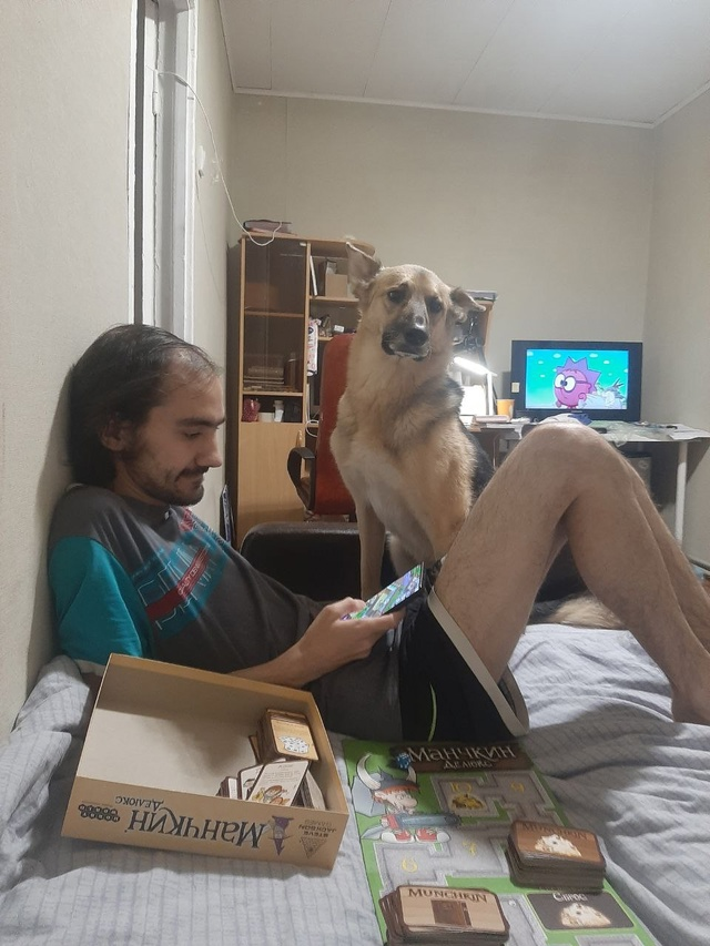 Мичи не любит, когда в этом доме его сумасшедшие хозяева занимаются чем-то новым и необычным. У нас это происходит редко, но метко. Можем на несколько дней залипнуть за настолками, жарко споря с пеной у рта и крича друг на друга. Конечно, мы не серьезно ругаемся. То что он мухлюет в манчкин не делает его плохим мужем. Человеком - да. Но что поделать, я этого человека выбрала добровольно. Он оказался с гнильцой, но и я правила трактую так, как мне удобно.