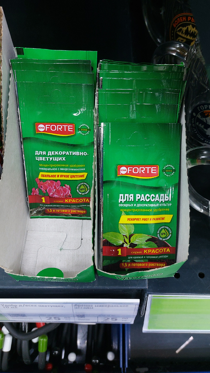 Удобрение для всех цветущих 10 мл, удобрение для рассады овощных и декоративных культур, получится 1,5 л готового раствора с каждой упаковки, цена 25 рублей каждой.