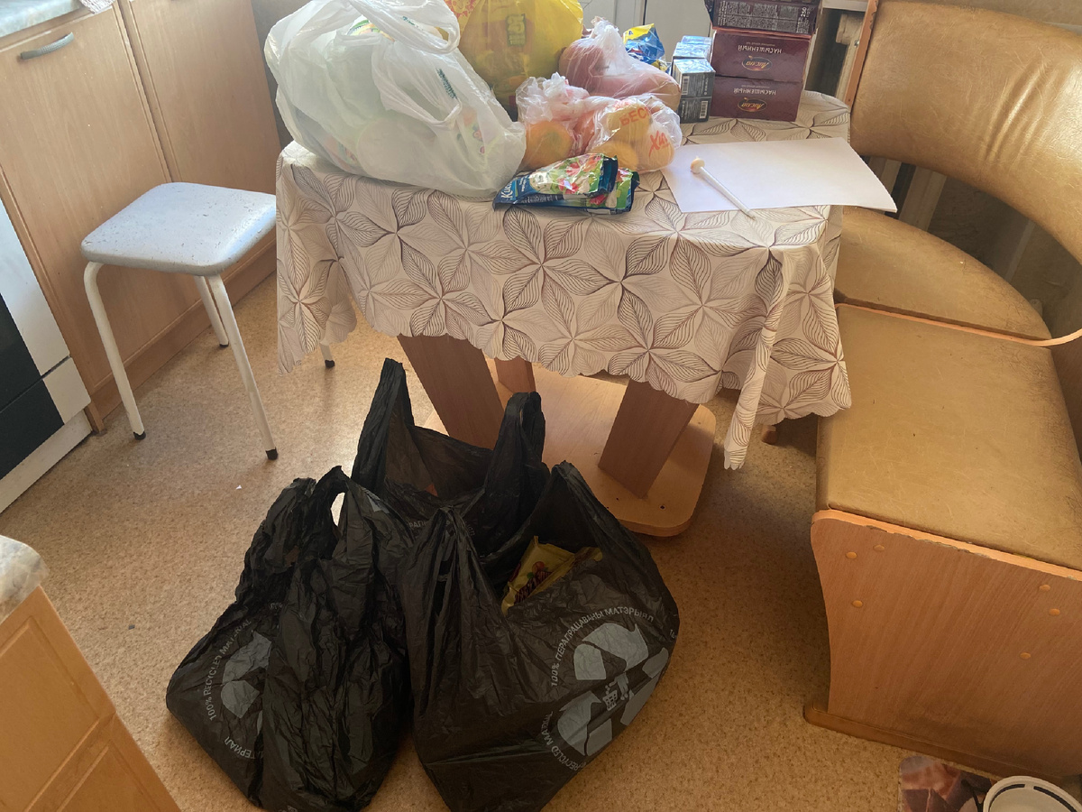 В первом пакете лежали печеньки, крекер, пряники и сухари. Во второй положила конфетки, шоколадки, чай и кофе. Третий пакет пакет пюре и лапша Ролтон, а так же приправы. В четвертый мыло, станки, носки, перчатки, тетрадки, ручки и спички.