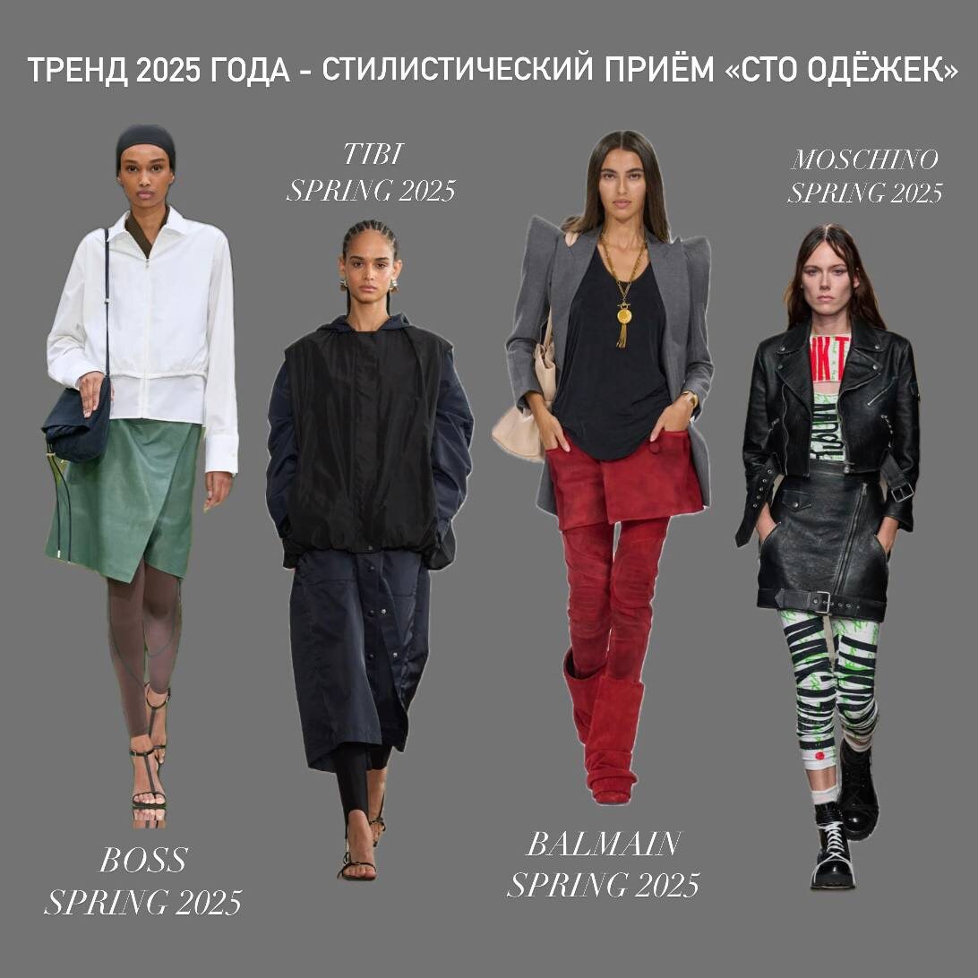 Стилистический приём 2025 года - «сто одёжек» - надеваем вниз и леггинсы, и юбку. Приём для самых смелых модниц, ведь выглядеть как «капуста» не все осмелятся. На подиуме дизайнеры представили образы с многослойным низом: на показе Tibi бермуды оказались надеты поверх легинсов со штрипками, Boss предложил сочетание кожаной юбки с леггинсами и босоножками, у Balmain поясные изделия и обувь в одном цвете и одной фактуры, а вот Moschino презентовал в образе отсылку к гранжу - кожаную юбка + полосатые лосины + массивные ботинки + косуха. В какой стиль увести данное сочетание леггинсов и юбки - решать вам, мы предлагаем сочетать леггинсы со штрипками с костюмной юбкой,балетками,жакетом, добавив джемпер в клетку в тон к сумке и юбке, завершив образ тёмно-синими серьгами. Получился лаконичный и не самый вычурный вариант тренда. Фото моделей взяты с сайта Vogue. Ждём вас на примерку на Большом проспекте ПС 92Б в Санкт-Петербурге, либо можете оформить примерку на дом. На сайте Proprio.ru дейс