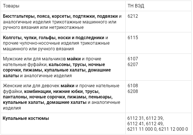 Подлежат ли маркировке нижнее белье, купальники и халаты