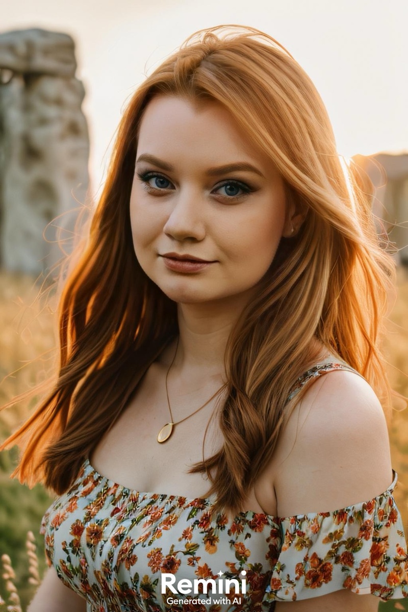 Очень красивый и нежный образ. Мне такое очень нравится, в жизни я ношу что-то похожее. К слову, на этом кадре ИИ перенёс меня к Стоунхенджу.
