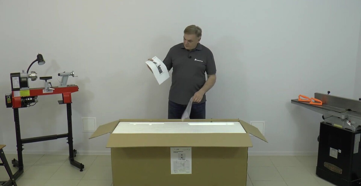 Здравствуйте, дорогие друзья! Сегодня мы рассмотрим ленточнопильный станок компании JIB модель TBS 356. Он поставляется в картонной коробке весом 127 килограмм. Давайте откроем ее и посмотрим, что там внутри.