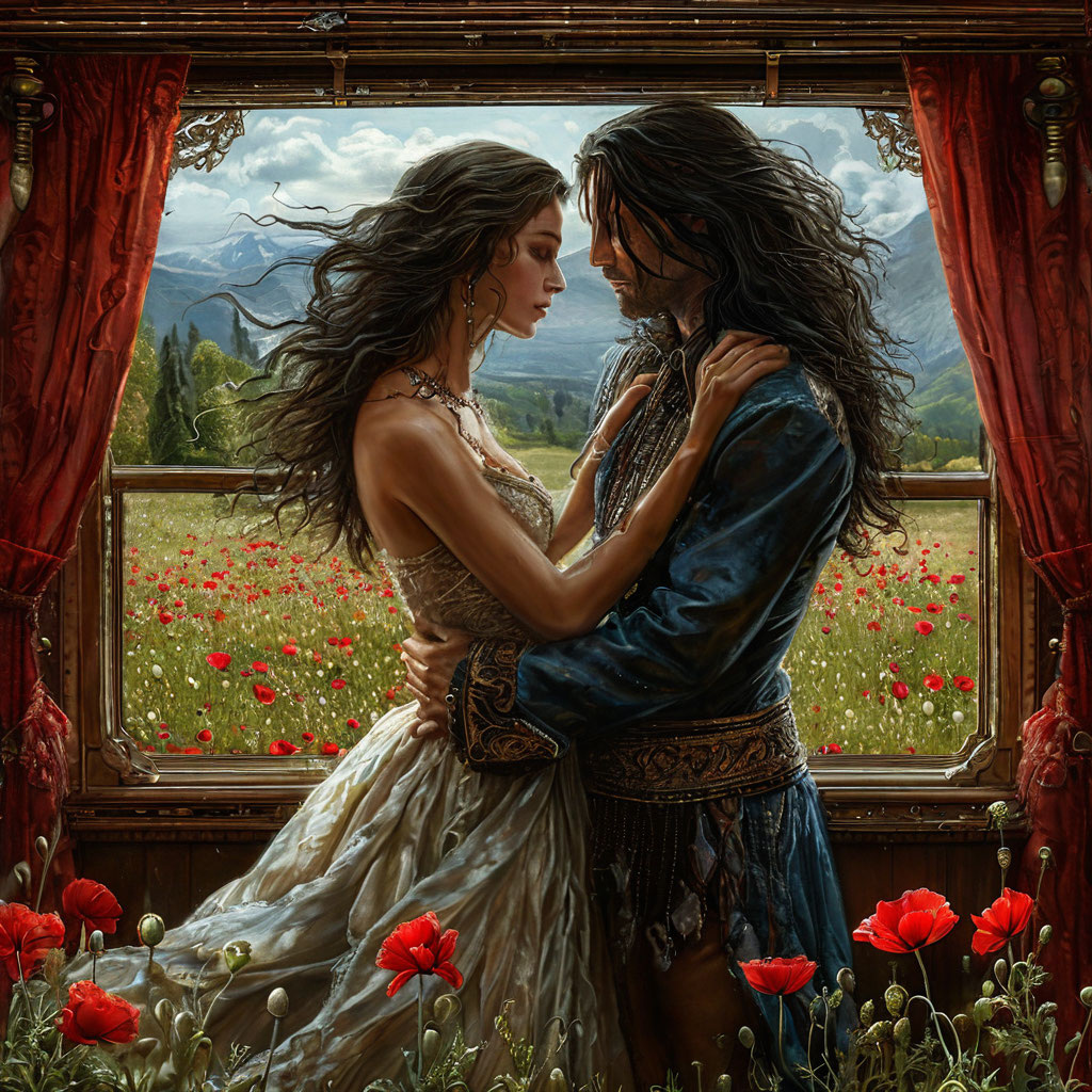 Его губы скользили по изгибу уха, оставляя влажный след, который мгновенно превращался в ледяной узор под порывом воздуха из окна. Ветер свистел в щелях купе, заставляя шторы трепетать, как крылья пойманной птицы. Он не спешил, словно играл с её временем, как змей с мышью. Его пальцы медленно расстегнули пряжку её ремня, и металл тихо звякнул в ритме стука колёс. — Ты дрожишь, — прошептал он, прижимая ладонь к её животу. Анна ощутила под кожей пульсацию странного символа — точь-в-точь как на старинной карте. — Но не от страха. Платье сползло с её плеч, обнажая грудь, на которой мерцал тот же узор, что и на его запястье. Мужчина провёл языком по контуру рисунка, и Анна вскрикнула — боль смешалась с наслаждением, словно кто-то приоткрыл завесу между мирами. Её тело откликнулось теплом, а он лишь усмехнулся, прикусив её нижнюю губу. Его рука опустилась ниже, к подолу, затянутому в кружева. — Покажи мне, что скрывает твой перевал, — выдохнула она, цепляясь за его волосы, чёрные и тяжёлые