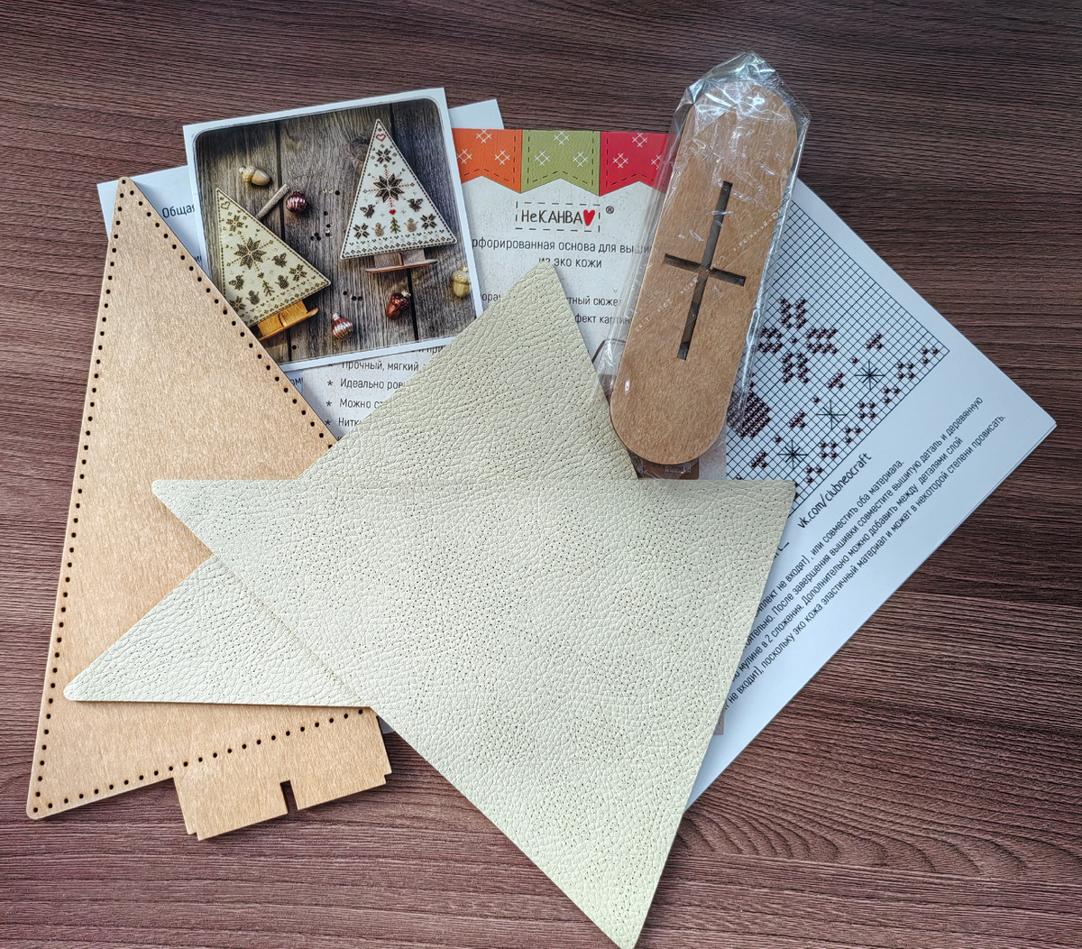 Приветствую, друзья! Спешу показать вам свои первые результаты по заданию😎 Задание необычное, подробнее о нем здесь👇 Напомню, что в основе взят набор от Неокрафт "Праздничная ёлочка", которая состоит из деревянной заготовки и двух кожаных с одинаковой перфорацией. Елка получится двусторонняя. В этой статье покажу, как я вышила первую сторону 😊 Я решила, что одна из сторон ёлки обязательно должна быть в классических новогодних цветах - зелёный, красный, золотой. Более того в материалах как раз имеется хороший зелёный оттенок бисера (Toho 36)👍 его я сделала основным. Красный бисер пришлось подобрать из запасов (подходящего в "квест-комплекте мужа" не нашлось). Зато в ход пошли какие-то безымянные остатки, что тоже хорошо 👍 Белый стеклярус и золотые бусины взяты из микса Toho mix 3217, а зеленый стеклярус и центральная бусина - из микса Toho ассорти 01. В ход пошел нежно золотой металлик (DMC Е677) и бисер Toho 989. Удивительно, как идеально они подошли друг другу, у моего мужа явн