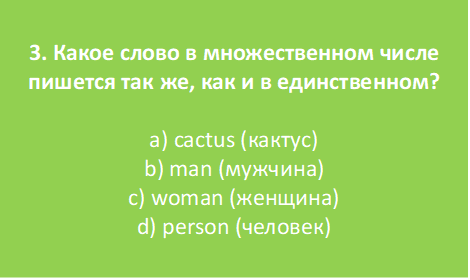 Тест на исключения в образовании множественного числа в английском языке