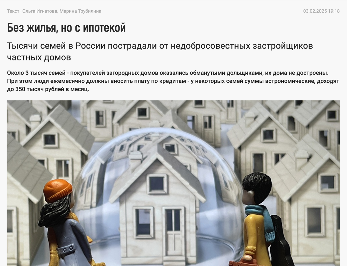В последние дни СМИ разносят новости о повсеместном мошенничестве в сфере ИЖС. Модная тема нынче, после истории на прямой линии с Путиным. Вероятно, ее активно двигают в преддверии 1 марта, когда начнет действовать закон об эскроу-счетах в ИЖС. Около 3 тысяч семей оказались обманутыми дольщиками, пишет РГ. Строительные компании не выполнили свои обязательства и не построили им дома, многие покупатели еще при этом выплачивают ипотеку. Общественники собирают данные о пострадавших, к марту их число может достичь 5-6 тысяч. В других СМИ — еще больше подобных новостей. Вот продолжается эпопея в Татарстане, вот нашли недобросовестных строителей в Удмуртии, вот — в Ленинградской области. Аналогичные проблемы раньше были обычным делом на рынке многоквартирного жилья. С момента запуска эскроу-счетов, замораживающих деньги покупателей в банке на время стройки, количество таких случаев сильно сократилось. Поэтому власти решили распространить эту практику на рынок ИЖС. С лета 2024 года построить д