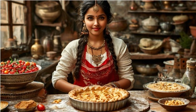 История о пироге «Шримати» произошла давным-давно. В ней рассказывается о прекрасной девушке с тем же именем, которая жила в удалённой индийской деревушке. Она славилась своими кулинарными талантами и умением готовить уникальную индийскую сладость — яблочный пирог, вроде шарлотки. Каждое утро Шримати собирала все необходимые продукты: спелые яблоки, ароматные пряности, муку и сахар. С любовью и терпением она замешивала тесто, нарезала фрукты и разогревала духовку. Под её искусными руками простые ингредиенты превращались в вкуснейший, ароматный и аппетитный пирог. Шарлотка Шримати обладала удивительной силой. Люди, кушая её, испытывали прилив счастья и радости. В деревне сформировалась традиция — перед важными событиями местные жители обращались к Шримати за её десертом, чтобы привлечь удачу. Однажды в деревне начался масштабный поиск затерянного сокровища. Жители вновь обратились к ней за помощью, и она испекла свою самую большую шарлотку в жизни. В момент, когда последний кусок был от
