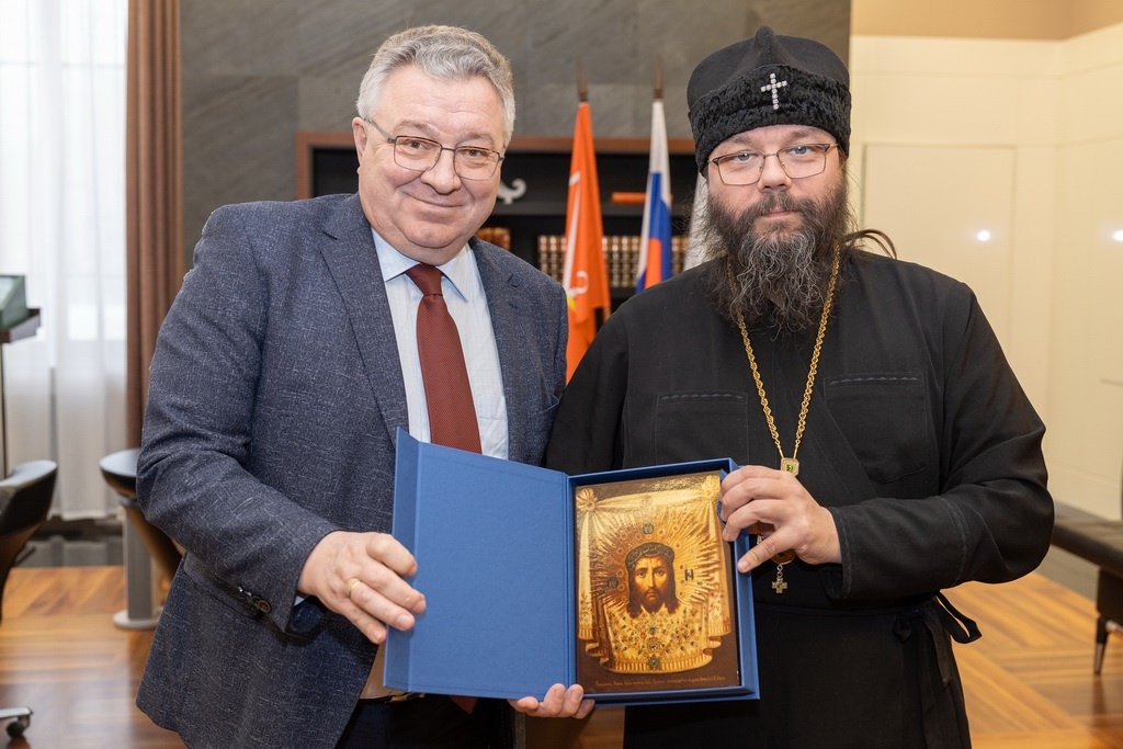 В рамках визита состоялась встреча Владыки Матфея с ректором СПбПУ Андреем Рудским. В совещании также участвовали проректор по молодёжной политике и коммуникативным технологиям Максим Пашоликов и член инициативной группы по спасению храма в Бельском Устье Валерий Силин.