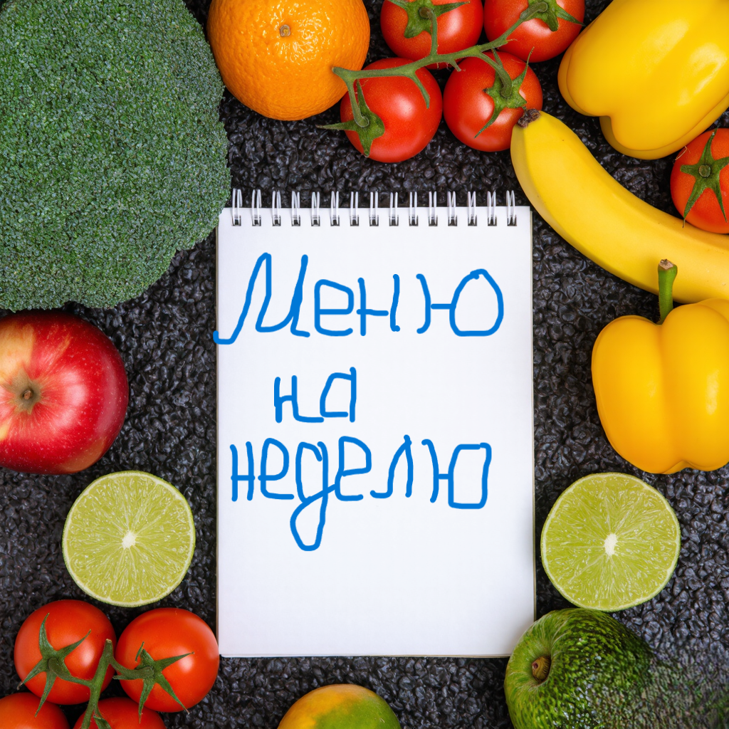 Вот пример меню на неделю, включающего разнообразные блюда для завтрака, обеда и ужина. Понедельник - Завтрак: Овсяная каша с ягодами и медом, чашка чая. - Обед: Куринный суп с vegetables, салат из свежих овощей. - Ужин: Запеченная рыба с картофельным пюре и брокколи. Вторник - Завтрак: Йогурт с гранолой и фруктами, кофе. - Обед: Гречневая каша с тушеной говядиной, огуречный салат. - Ужин: Тушеная капуста с сосисками, кусочек черного хлеба. Среда - Завтрак: Яичница с помидорами и зеленью, стакан сока. - Обед: Борщ со сметаной, пирожок с картошкой. - Ужин: Куриные грудки, запеченные с овощами, салат из рукколы. Четверг - Завтрак: Тосты с авокадо и яйцом пашот, зеленый чай. - Обед: Рис с овощами и курицей, салат из капусты. - Ужин: Спагетти с томатным соусом и тертым сыром. Пятница - Завтрак: Панкейки с медом, кофе. - Обед: Уха, салат из свеклы. - Ужин: Фаршированные перцы с мясом и рисом. Суббота - Завтрак: Каша из киноа с орехами и медом, брусника. - Обед: Крем-суп из брокколи, кр