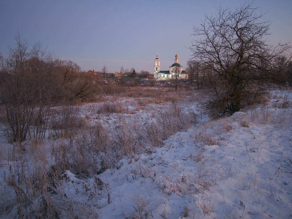 Бывает так, что иногда роешься в архиве, и попадается фотография, про которую уж и не помнишь. Становится интересно, а удалось ли еще снять что-нибудь путное в тот день. Тянешь за ниточку, и, оказывается, что была насыщенная поездка. Вот про такой случай и расскажу. Путешествие это случилось 12.12.2020 г. Тогда стояла морозная солнечная погода, которую я так люблю. Это меня и побудило выбраться рано утром на природу. Прогулку начал с окрестностей села Сидоровское. Там красивая натура благодаря речке Молохта и храму, живописно расположенному на крутом берегу. Подъехал к Сидоровскому в половине девятого утра. Солнце еще не взошло, и можно было наблюдать красивые утренние сумерки. Подсветку у Предтеченской церкви еще не выключили, огоньки на храме не портили картину. Спустился в низину и направился к реке. Снегу еще мало нападало, и торчащая из него растительность была в густом инее. Подошел к реке. Со стороны Молохты открывался красивый вид на храм. Если взгляд направить в противополож