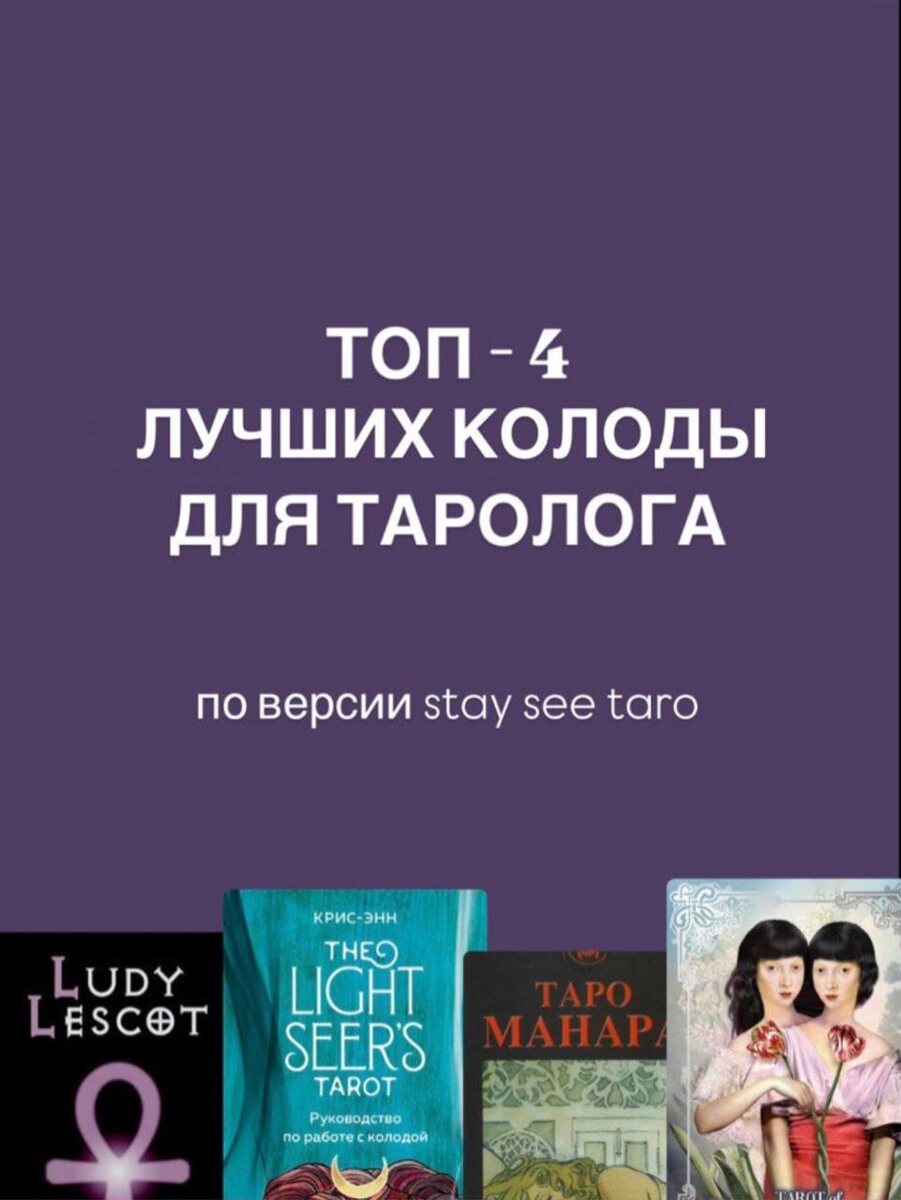 3. Личные ощущения от атмосферы карт. Если вам не близок стиль, подача, отталкивают изображения - это не ваша колода. Важно быть в коннекте и наслаждаться процессом. Так вот, мои фавориты: Делитесь своими любимыми колодами в комментариях и гадаете ли вы на тех, о которых рассказала я? ПОДПИСЫВАЙСЯ И СТАВЬ ЛАЙК❤️