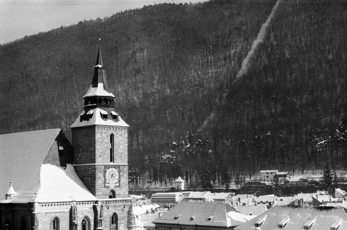 Немного пленочных фотографий и неповторимого колорита заснеженного города в Карпатах. Здесь мы были в канун рождественских праздников, в прошлом году, если память не изменяет. Пили глинтвейн, гуляли по заснеженным лесным тропинкам для туристов: они вверх в люльке, мы вниз в ней же, пешком, следовательно, наоборот. Нам очень хотелось совместить - вдоволь ушагаться, подышать, и насладиться снегом. Его мы видим очень редко. За прошедший календарный год, единожды. Вроде подарка на новый год, снег выпал аккурат 1 января, растаял к вечеру. Больше не встречались. На горе стоит вывеска BRAȘOV, там же открывается обзор на город. Мы же забрались еще выше. Весьма красиво, настоящие горы. Спускаясь по склону, можно в разной степени приближения сфотографировать вид на заснеженный город. Городские улочки в эту поездку мы практически не фотографировали, сфокусировавшись на глинтвейне и обозрении книжных и сувенирных лавок. И еще немного фото... Продолжение будет...