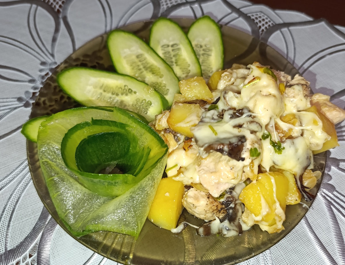 Когда сыр расплавится - вынимаем из духовки. Наш вкуснейший жульен готов.