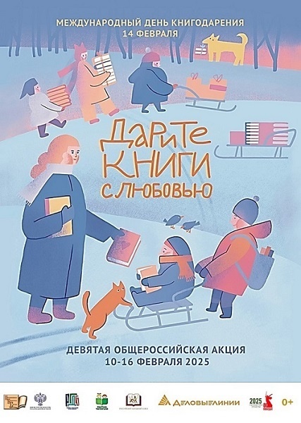 С 10 по 16 февраля 2025 года Ассоциация деятелей культуры, искусства и просвещения по приобщению детей к чтению «Растим читателя» проводит Девятую общероссийскую акцию «Дарите книги с любовью», приуроченную Международному дню книгодарения, который отмечается 14 февраля во многих странах мира.