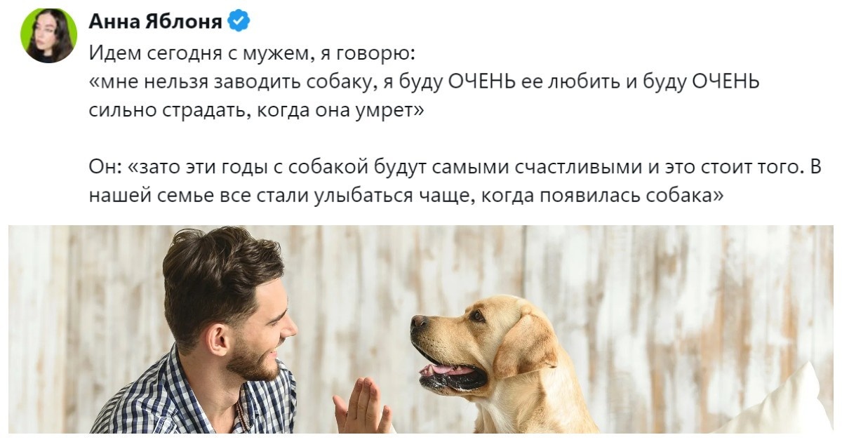 Но вот закавыка: век собачий короток. Даже представители самых долгоживущих пород и стойкие дворняжки живут намного меньше людей. И перенести потерю четвероногого друга, когда приходит его время, бывает очень и очень тяжело. Из-за этого некоторые даже отказываются повторно заводить щенка. А те, кто только размышляет по этому поводу, тоже отказываются из-за страха потери. Но ведь те годы, что пёс проживёт в доме, это время радости, стоит ли сознательно от этого отказываться? Пользователи посвятили этому вопросу немало времени. К каким же выводам они пришли?