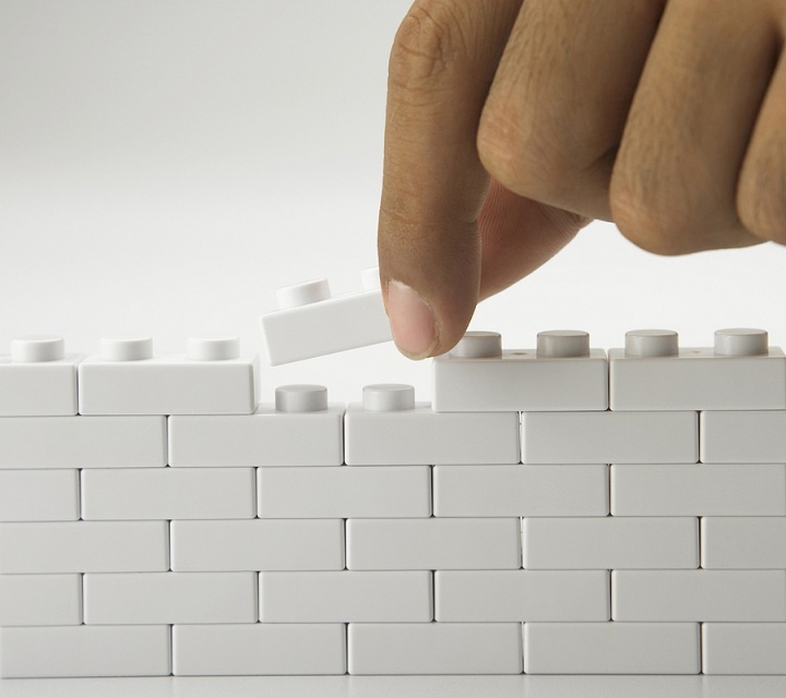 Лего кирпич не зря получил такое название. По сути дела, его кладка напоминает сборку знаменитого конструктора, когда поверх нижних блоков устанавливается верхние элементы с перевязкой и соединением шип-паз. При этом для получения монолитной стены, необходимо применять заранее подготовленный клей для керамической плитки.