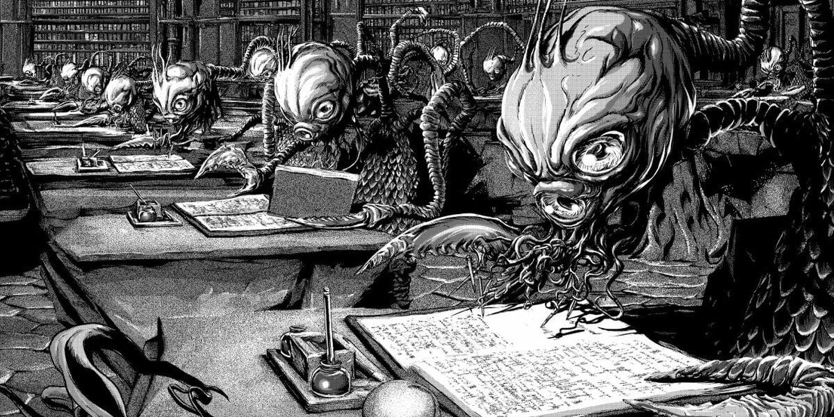 Подростком все описания я визуализировал сам. К 2015 году рынок был наводнён иллюстрациями. В основном американскими и европейскими. Прочитав предположение Уэльбека, я пошутил: вот узнают японцы, что «Мифы Ктулху» – это тоже манга, и начнётся. В каждой шутке есть доля. В те годы уже «началось». И сериалы, где космические божества превратились в симпатичных школьниц и скрываются на Земле, в Японии, ходят на уроки и заигрывают с обычными людьми. И графические романы. На данный момент больше всего визуализаций рассказов Лавкрафта принадлежит японскому художнику Го Танабе. Первый комикс «Изгой» он выпустил в 2004 году.
