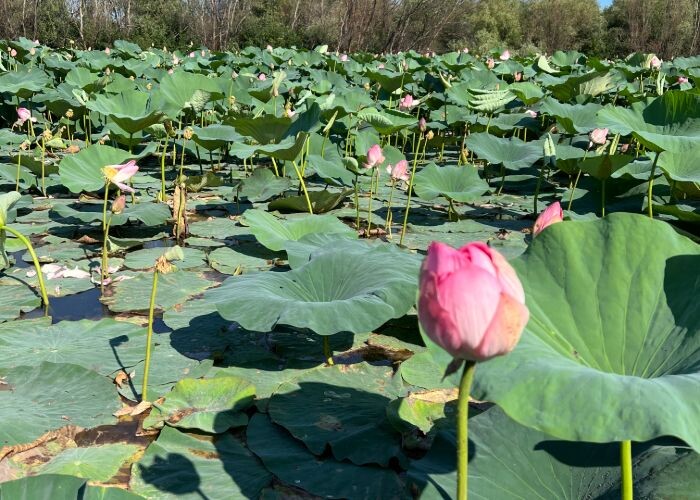 Лотос – краснокнижное растение. Воздержитесь от желания взять с собой цветы в качестве сувенира или для украшения. Тем более, сорванный бутон быстро вянет, даже если поставить его в воду. Учитывая, что лотосы предпочитают мутную воду, купаться здесь также не рекомендуется.