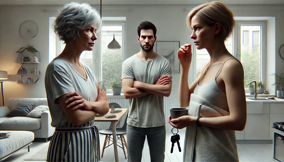 Дима, как загнанный в угол, отошёл к двери, растерянно потирая лоб. Он уже не знал, на чьей стороне быть. С одной стороны, мать, которая всегда защищала его в детстве, с другой — жена, которую он любил. И каждая требовала его поддержки.