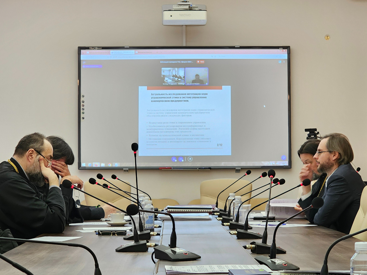 4 февраля выпускники дистанционной магистерской программы «Православное богословие и философия в современном дискурсе» представляли свои выпускные квалификационные работы экзаменационной комиссии на итоговой аттестации. Защита магистерских исследований проходила, как и в предыдущие годы, в Учебном комитете Русской Православной Церкви, где собрались члены комиссии, возглавляемой председателем Учебного комитета протоиереем Максимом Козловым. В состав комиссии также вошли митрополит Пензенский и Нижнеломовский Серафим (Домнин) и ректор Коломенской духовной семинарии протоиерей Вадим (Суворов), а со стороны ПСТГУ - начальник учебно-методического управления Татьяна Владимировна Меланина, руководитель магистерской программы Татьяна Николаевна Резвых и преподаватель магистратуры, доцент кафедры новых технологий в гуманитарном образовании Даниил Дмитриевич Черепанов. Члены экзаменационной комиссии, а также директор ИДО протоиерей Геннадий Егоров, заместитель директора по ученой работе Оксана