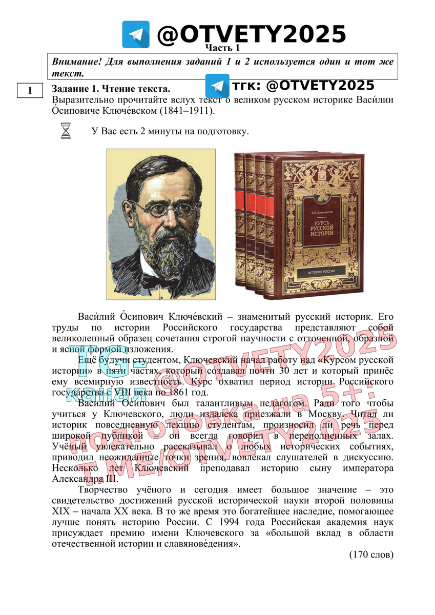 Оригинальный текст о великом русском историке Васи́лии О́сиповиче Ключе́вском (1841–1911):