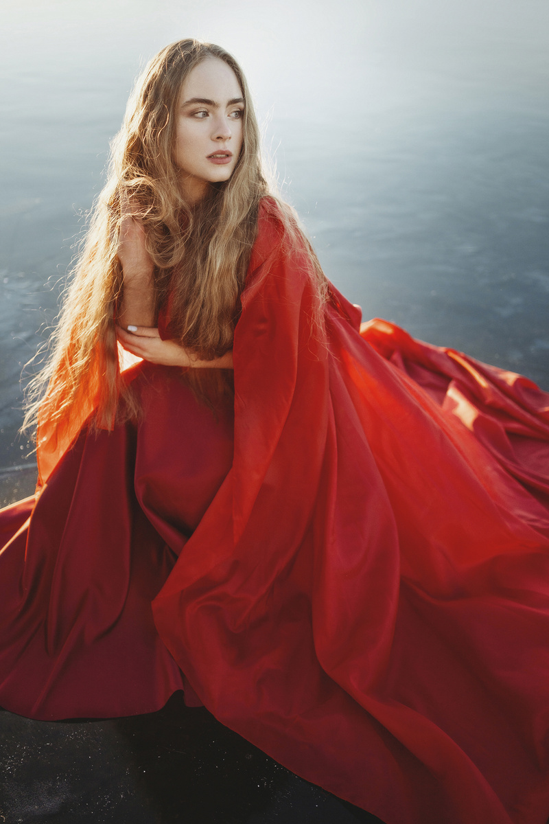 На эту фотосессию с Настей мы собрались совершенно спонтанно. Увидели, как красиво застыла вода в водохранилище, и на следующий же день поехали снимать. Такой прозрачный и гладкий лёд — явление довольно редкое в наших краях, поэтому хотелось его запечатлеть. И сделать это именно на рассвете, чтобы поймать красивую утреннюю палитру.