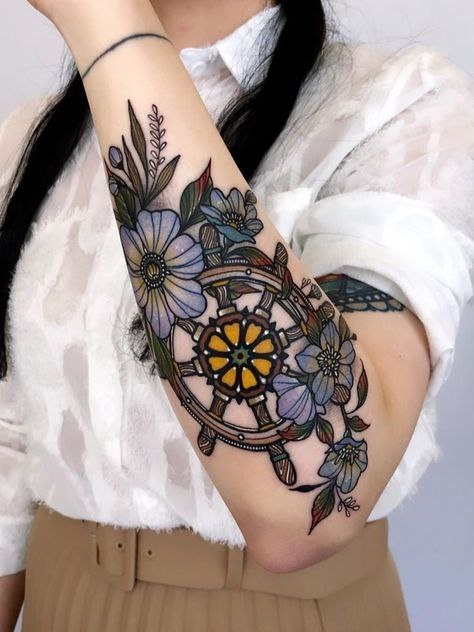 Татуировки с изображением штурвала корабля имеют несколько глубоких значений: Они символизируют контроль над ходом своей жизни. Означает сохранение правильного курса Дань уважения духу путешествий и открытий Означает безопасность и твердость в жизни Указывает на то, что вы являетесь наставником или лидером для других. #КороткоОТату
