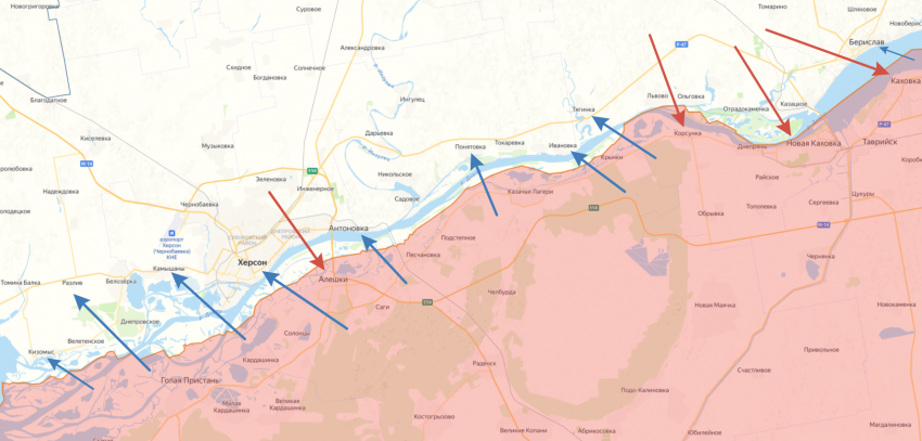 На левом берегу били по Новой Каховке, Каховке, Любимовке, Малокаховке и Алешкам. Ночью стреляли по Каховке, Пролетарке, Корсунке и Алешкам.